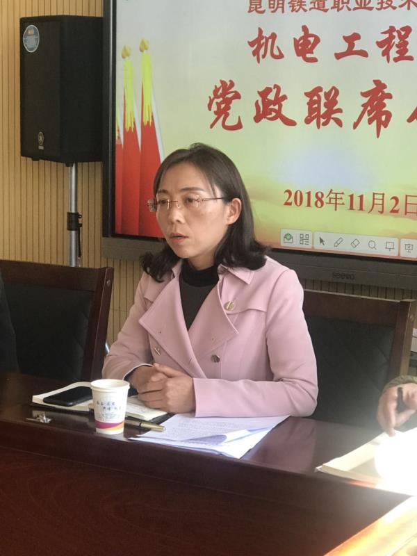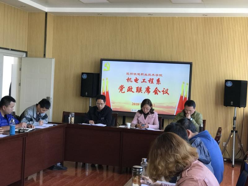 为提高工作效率,机电工程系于2018年11月2日下午在天佑楼三楼会议室首先召开了系党政联席会议,随后机电工程系与机车车辆系联合召开了人才培养评估与建设专题推进会议。机电工程系主任许剑伟、书记张永明、两个系所有教研室主任、辅导员、相关班主任老师出席会议,学院党委副书记、院长李瑞林莅临指导,会议由机电工程系书记张永明主持。