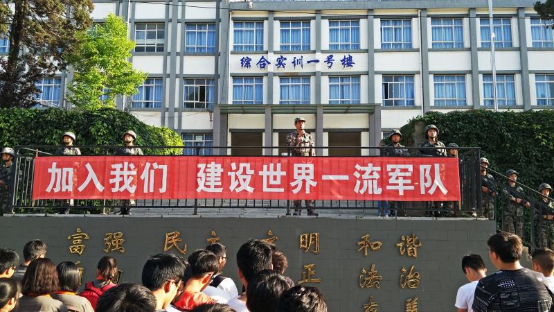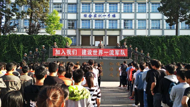 “加入我们,建设世界一流军队”向往军营生活的心在澎湃,期待着这一天的到来。纸上得来终觉浅,绝知此事要躬行。时刻准备着投笔从戎,踏入军营为胜利前进。现场同学们满怀热情,踊跃报名,期待着军歌比赛,憧憬着美好军营生活。