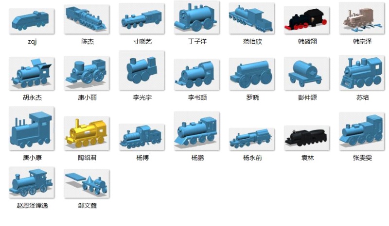 与同学们自己组建的兴趣社团相比,3D建模社团由机械基础教研室的老师担任指导教师,定期的组织同学们进行社团活动和学习。随着指导老师的面授课程,同学们对建模软件熟悉后,第一次以列车头为主题的建模作业就有20余位同学交出了自己精美的建模作品。