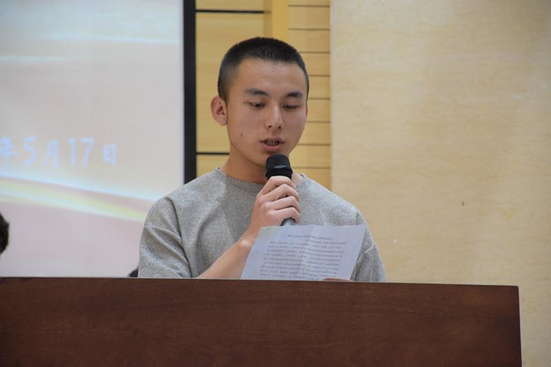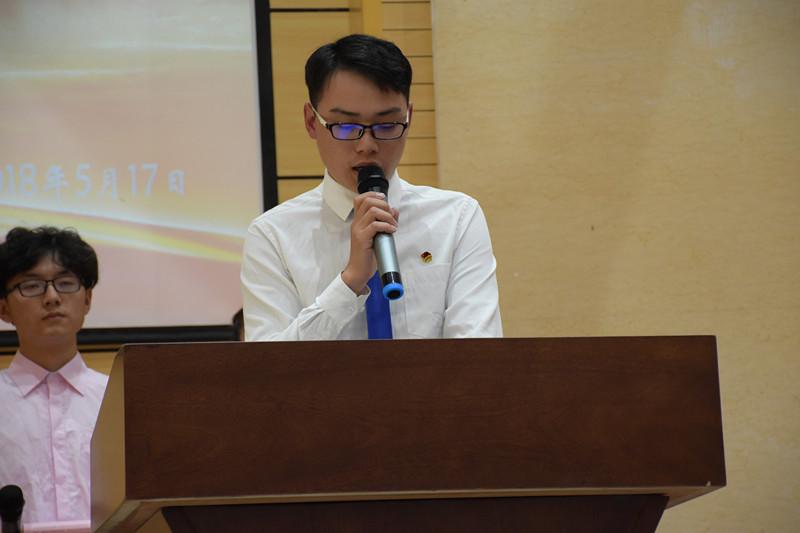 大会第二项议程,由优秀团员代表陈浩宇同学,优秀学生干部代表普建伦同学,优秀学生社团代表定向运动协会副会长徐霞同学分别为同学们分享他们的成长经历和体会。