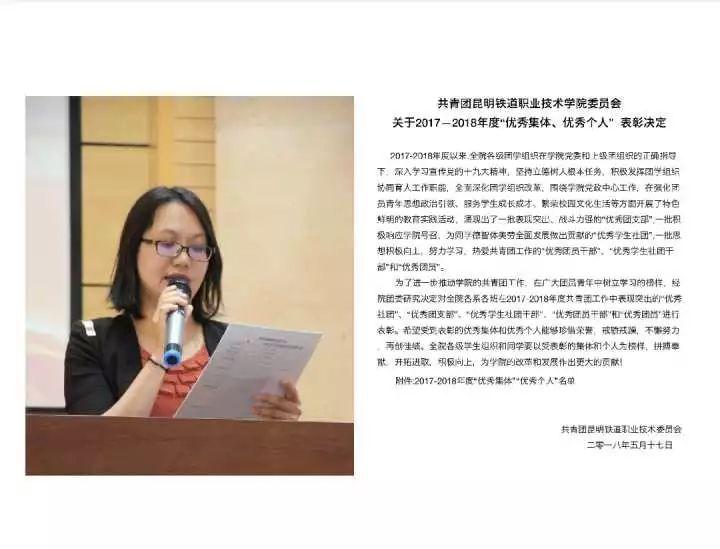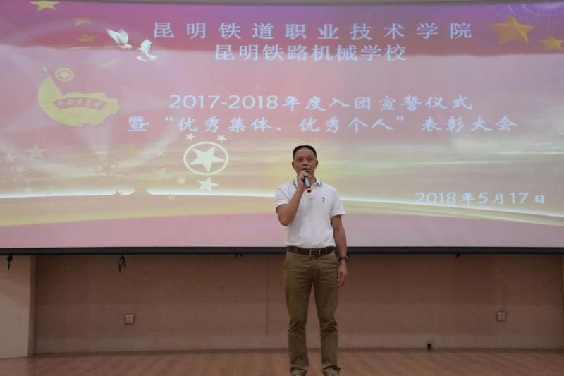 2018517日下午16:00,院团委在图书馆报告厅举行了2017—2018年度入团宣誓仪式暨优秀集体、优秀个人表彰大会。学院纪委张书记,团委刘书记、杨老师,机车车辆系李老师出席了本次表彰大会。