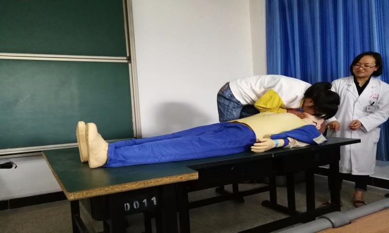 线路医生详细为同学们讲解了创伤急救的五项基本技术,并在现场做了生动演示。吴晓燕医生则详细为同学们讲解和示范了心肺复苏的要领,如何调整体位、打开气道、判断呼吸、人工呼吸、胸外心脏按压等急救法。讲座中,同学们也上台进行了实地演练,感受了整个急救过程。