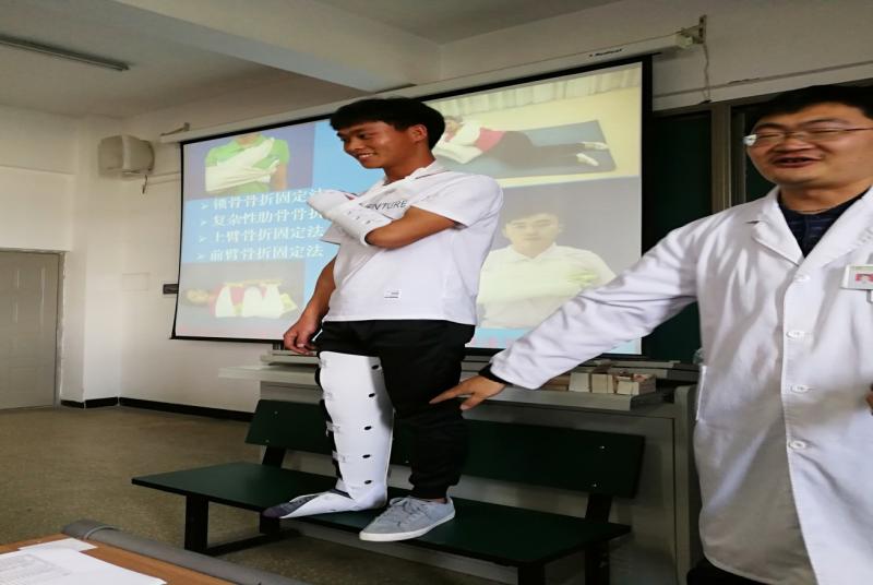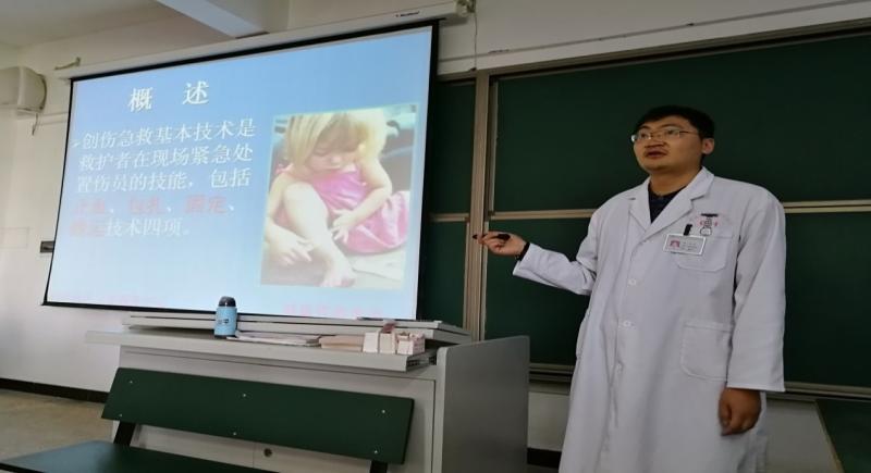 讲座以PPT教学和实践操作相结合的方式展开,内容主要包含两个方面:“创伤急救基本技术”、“淹溺救治、心肺复苏”。