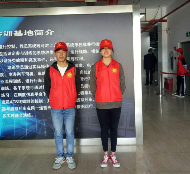 4月9日,志愿者分成四大组,他们扮演着不同的角色,承担着不同的任务。有的志愿者用耐心细致接待着来自各参赛代表队的老师和同学;一部分志愿者在以升楼各个赛点配合老师做好检录、抽签工作;另一些志愿者被分到城市轨道交通实训基地为比赛的同学做引导和提示;其他志愿者在报告厅赛点为比赛的同学做服务工作。