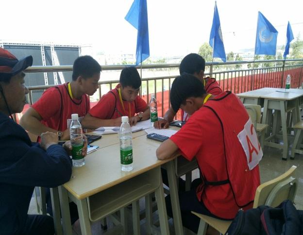 选手们正在埋头在纸上对数据进行精确的处理,他们认真的样子与明媚的阳光青葱风景渲染成春天的绚丽;他们是人间的四月天,在竞技场上展现他们的风采。