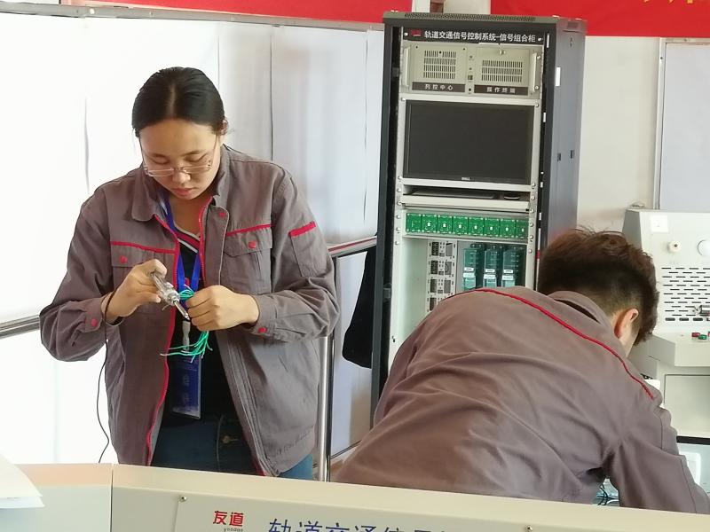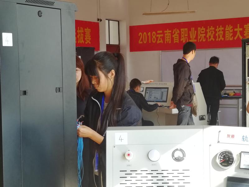本赛项为2018年首次开展的国赛项目,也是云南省首次开展的职业院校职业技能竞赛项目。该项目主要针对交通运输、装备制造类高职学生,紧紧围绕轨道交通信号控制系统实训平台,以列控中心(TCC)、客专移频柜内设备(客专发送器、客专接收器及客专衰耗盘)、继电器为载体,充分展现地面列车运行信号控制逻辑设计和信号传输过程,全面考查参赛选手对设备的调试、应用、系统运行与故障检测,系统设备维护和职业素养等专业技能。