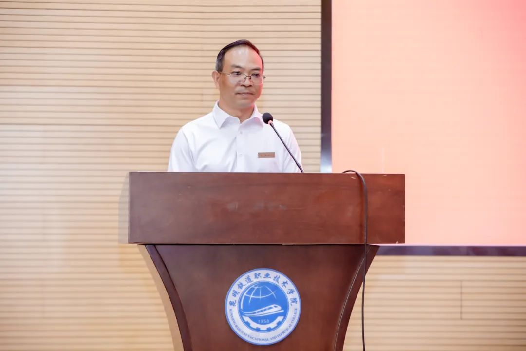 云南省教育厅职成教处副处长胡正刚、昆明市教育体育局职成教处处长文春燕、学院党委书记王树华、云南省智慧城市集成服务商协会秘书长杨智华以及来自行业、企业的云南数字经济产业链产教融合共同体首批成员单位代表参加成立大会,大会由学院副院长田效军主持。
