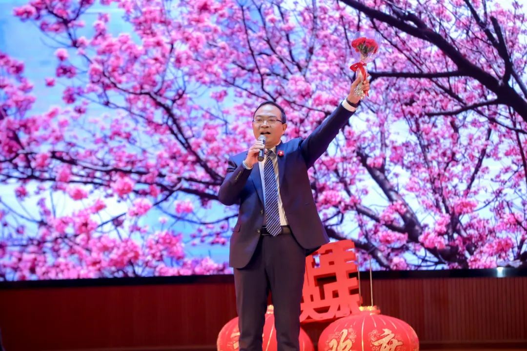 党委书记王树华在致辞中用“陪伴”“读书”“旅行”为全体教职工送上了温暖的新春祝福,他表示,过去的一年,全校上下凝聚共识、团结奋斗,统筹推进各项事业的高质量发展,在教学科研、人才培养、校企合作等方面取得了可喜的成绩,他对全体教职工的辛勤付出表示感谢,并希望全体教职工在新的一年以更加昂扬的精神、更加奋进的姿态携手并进,共创辉煌!