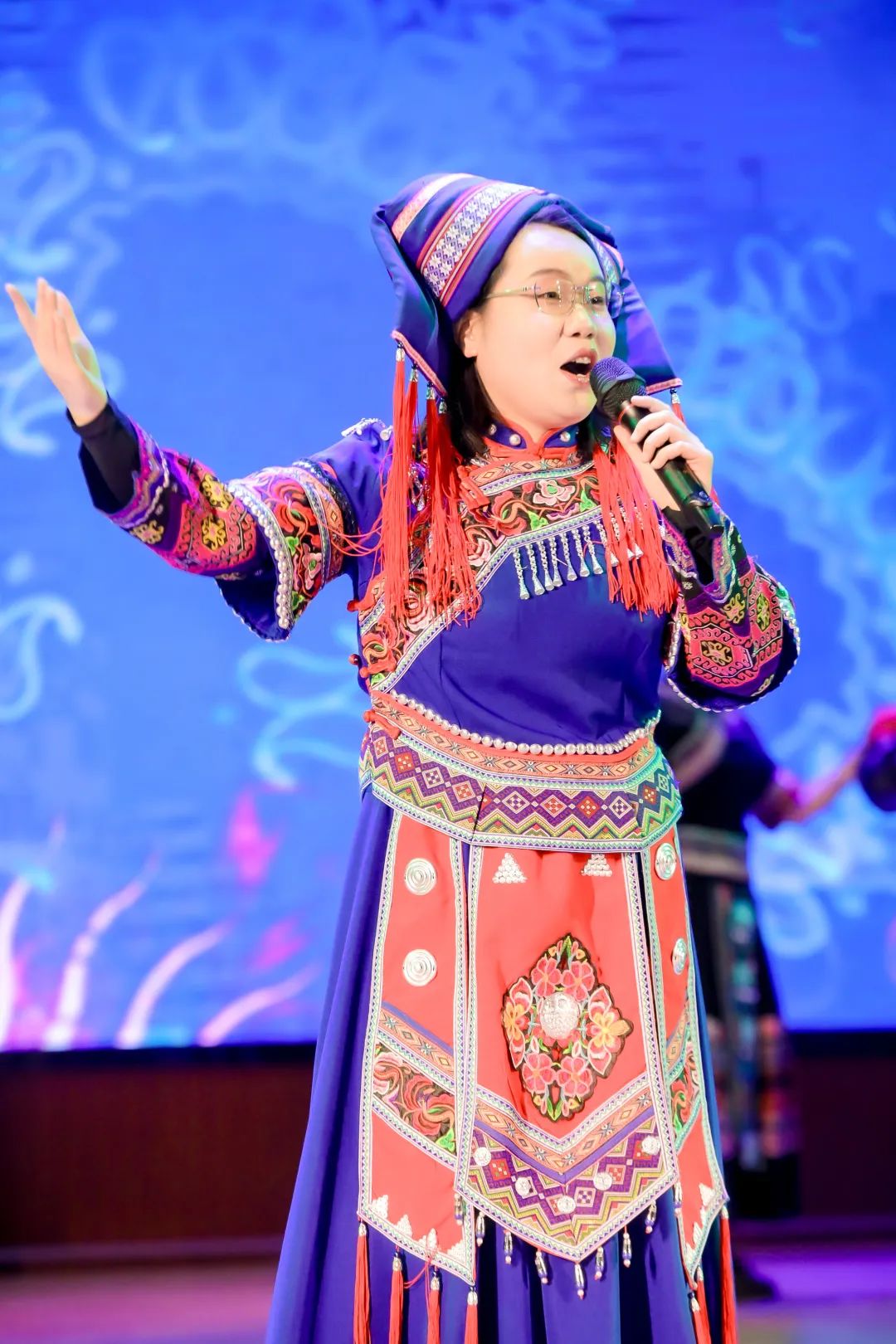 用歌声、舞蹈、朗诵等形式