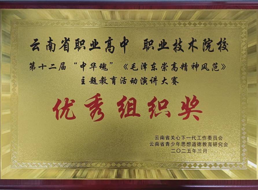 3月22日,云南省职业高中、职业技术院校2024 年“中华魂”(毛泽东崇高精神风范)主题教育演讲比赛的总决赛在曲靖技师学院落下帷幕。新葡萄学子杨太伟、张镁、朱瑾荣获二等奖,学院荣获 “优秀组织奖”。
