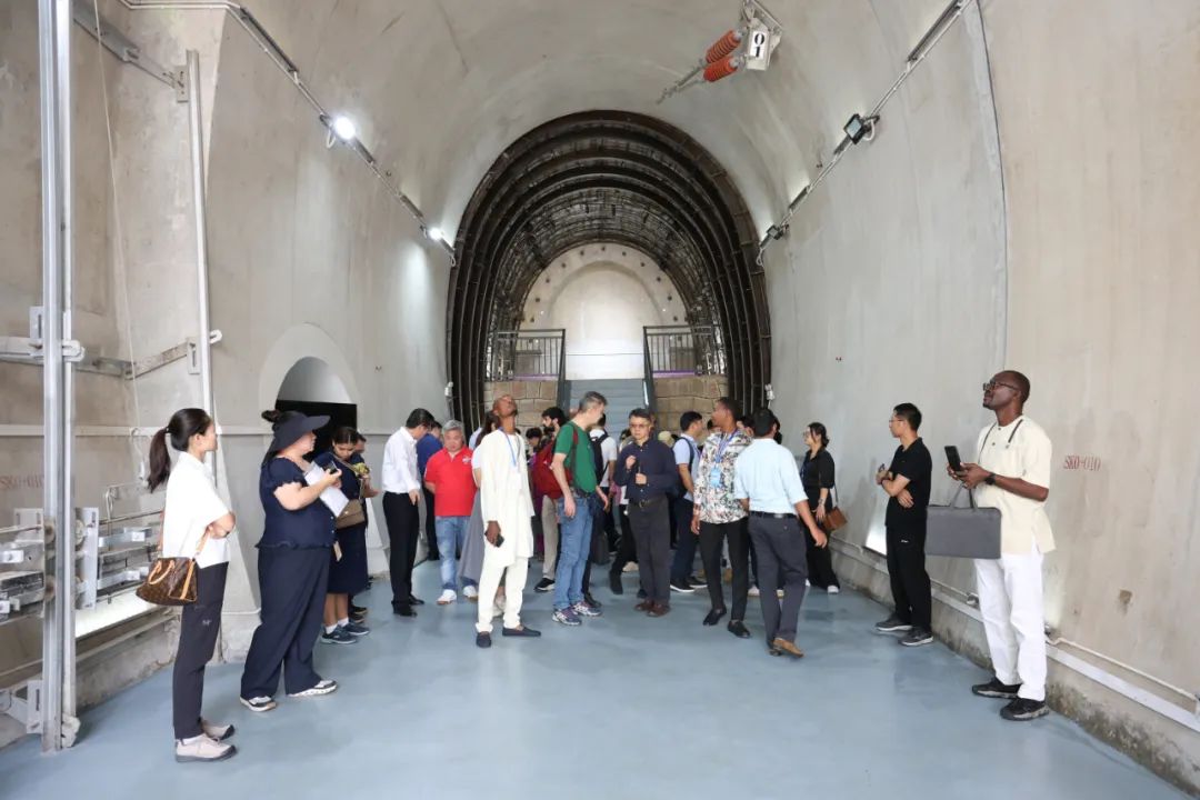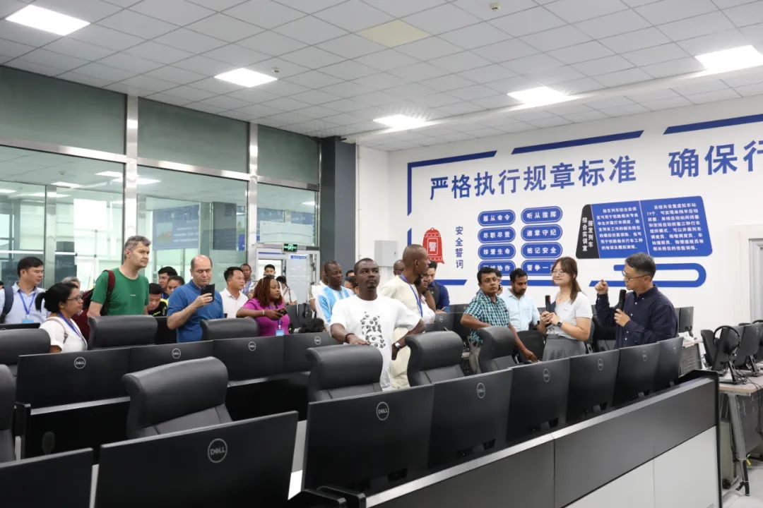 来自“一带一路”10个沿线国家的34名学员在副院长田效军陪同下,实地参观了学院 “云南高速铁路技术公共实训基地”,学员们近距离观察复兴号整车构造,并在模拟驾驶舱中体验铁路虚拟驾驶场景。机车车辆学院院长马力教授介绍,实训基地秉持“教学设备与铁路现场同标准、教学过程与岗位流程同规范”理念,已成为展示中国铁路技术的重要窗口。