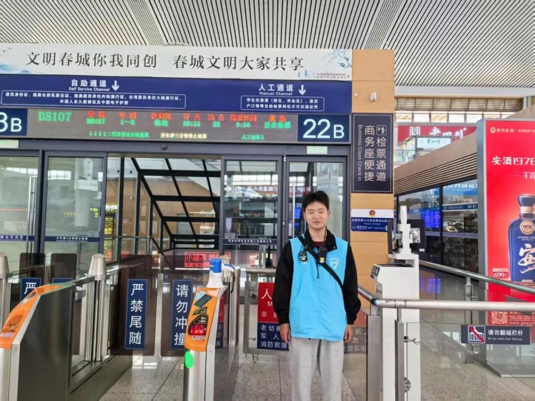 作为班长与辅导员助理,他积极投身校园服务与社会实践。组织英语考级考场布置、爱国卫生志愿活动,奔赴铁路开展支援,耐心为旅客答疑解惑。