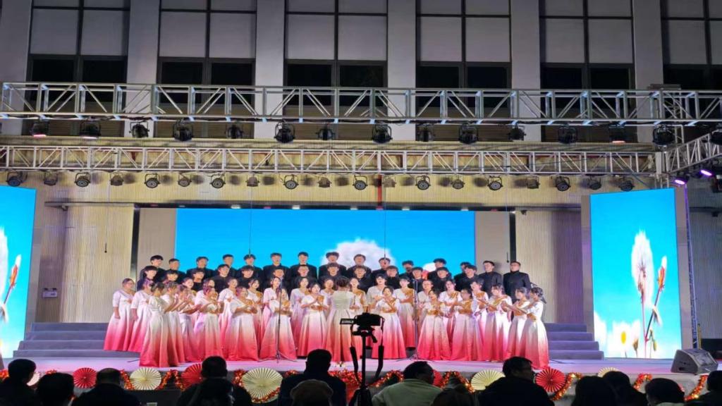 比赛现场,各参赛队伍精神抖擞、着装整齐,以饱满的热情唱响红色经典与时代赞歌。《黄河大合唱》《我和我的祖国》《祖国不会忘记》《爱我中华》《明天会更好》等曲目轮番上演,选手们用嘹亮的歌声、真挚的情感诠释对祖国的热爱、对党的忠诚,展现了当代大学生传承红色基因、勇担时代使命的精神风貌。独特的编排、默契的配合与富有感染力的演绎,赢得了现场评委与观众的阵阵掌声。