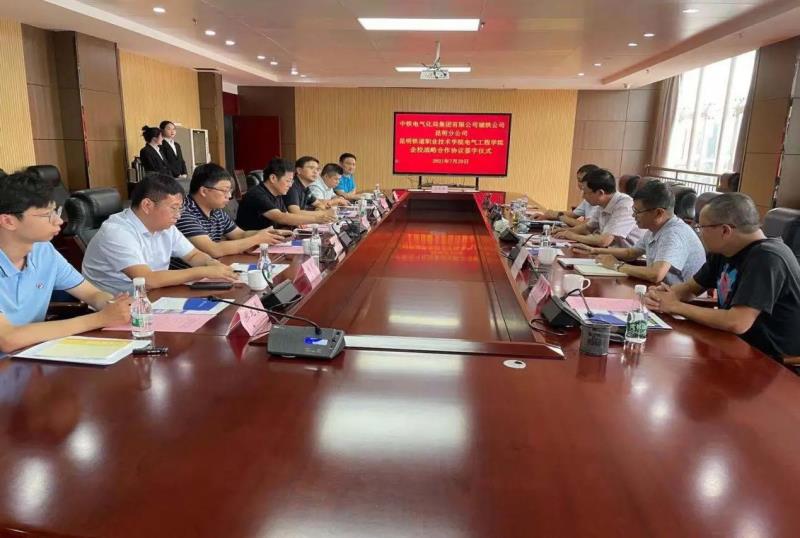 在双方代表的见证下,电气工程学院院长赵伟与中铁电气化局集团有限公司城铁公司昆明分公司总工程师喻宇签订校企战略合作协议。