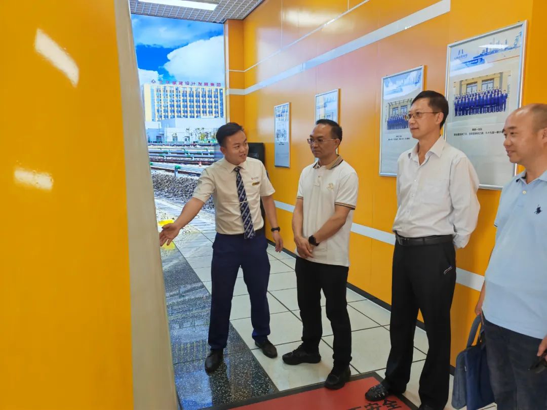在公司副经理王树文、郑志伟的陪同下,公司车辆中心副经理罗曦春带领学院调研团队参观了公司大漾田车辆段DCC运转中心、车辆检修车间、模拟驾驶实训基地、立体仓库设备、职工之家等场所。
