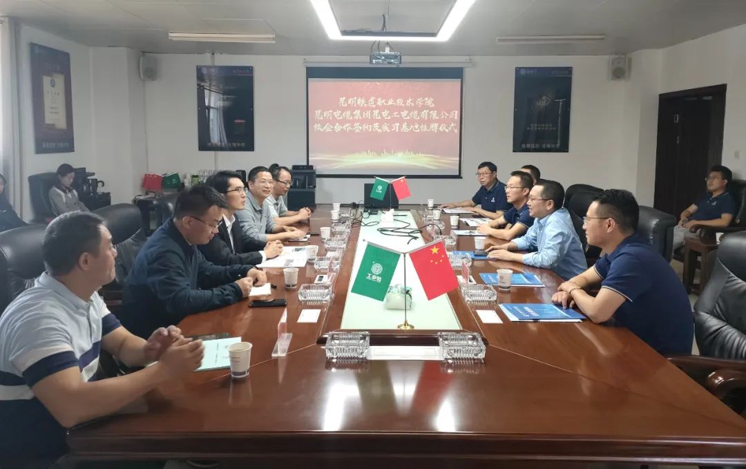 在双方代表的见证下,机电工程学院党支部书记张永明和昆电工公司段勇副部长签订了校企战略合作协议书,邹建斌和高洪坤为校外实践教学基地揭牌。