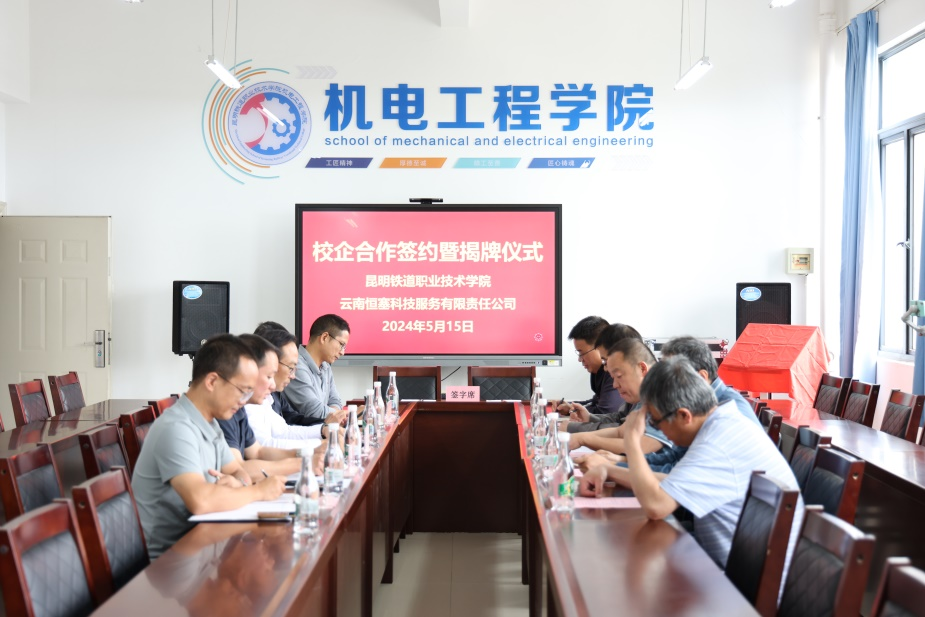 为进一步深化校企合作内涵,探索产教融合协同发展新路径。5月15日,学院与云南恒塞科技服务有限公司签署共建“智慧实训平台研发基地”合作协议。学院党委书记王树华,副院长邓正均,云南恒塞科技服务有限责任公司总经理路里、技术总监晏和猛,学院机电工程学院党政负责人及教师代表参加签约仪式。