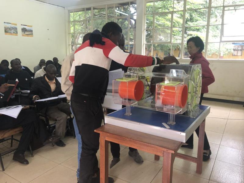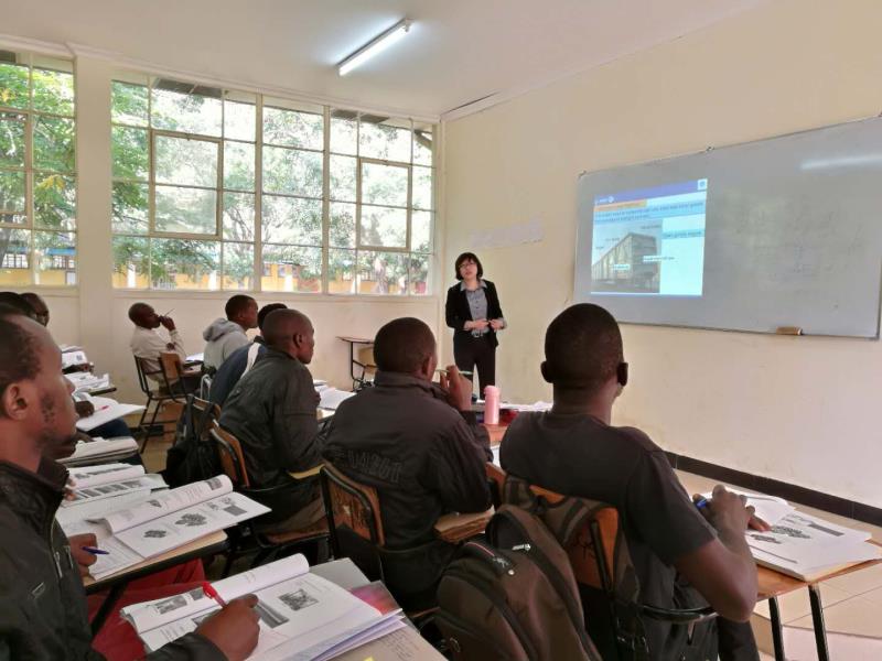 2016年10月—2017年6月,我院参加了由西南交通大学牵头承办的肯尼亚蒙内铁路的63名员工“机车运用”和“机车检修”两个岗位的培训工作,学院精心选拔了机车车辆系4名专业教师和2名英语教师,组成援外教学专家团赴肯尼亚开展培训并圆满地完成了工作任务。由于我院援外教学团队培训成绩突出,得到了中国路桥公司和西南交通大学高度赞扬,《中国日报》、中央电视台及肯尼亚《非洲周刊》等官方媒体对我院援外教师进行了专访。