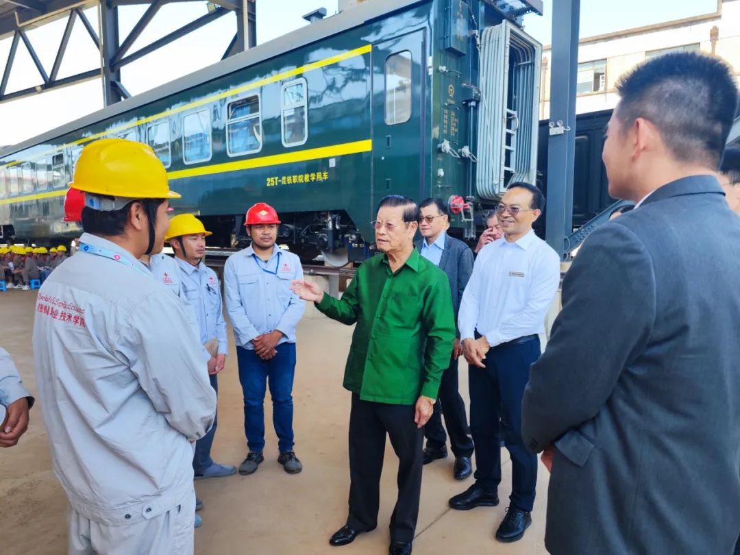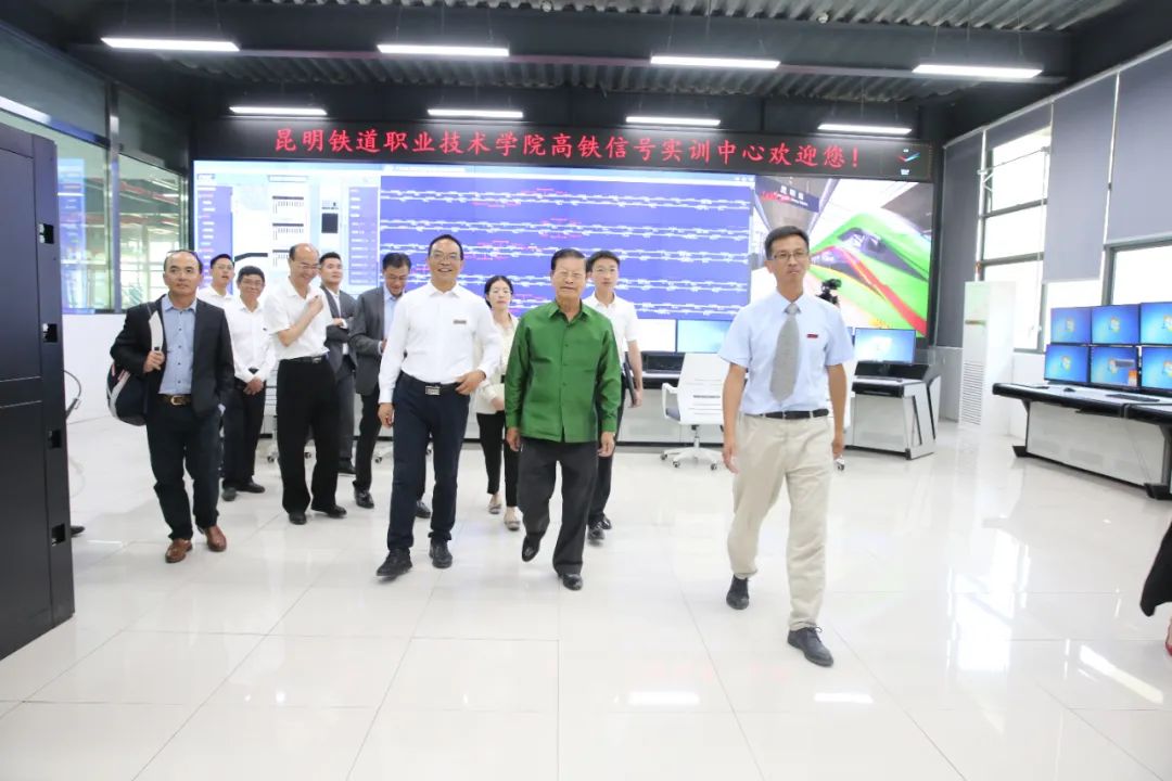 考察团考察参观了学院机车检修实训基地、城市轨道交通实训基地、云南高速铁路技术公共实训基地、机车驾驶模拟仿真中心等教学实训场所。并与在各实训场所上课的老挝籍教师、留学生进行了亲切交谈,了解了他们在校学习生活情况。