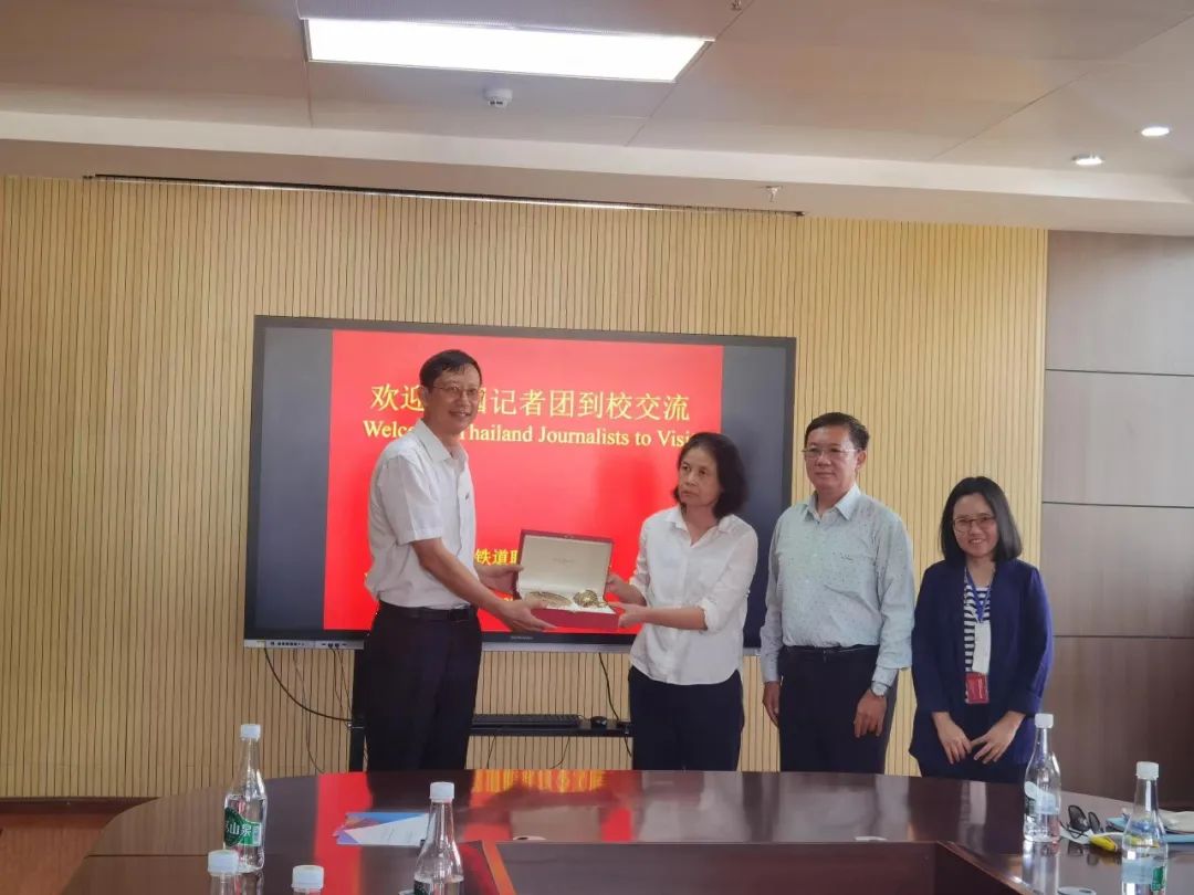 座谈会上,学院副院长尹光和泰国记者团代表互赠礼物。尹光对新葡萄办学基本情况、人才培养方面的特色及优势、援老挝铁道职业技术学院项目情况分别作了介绍。希望在未来和泰国开展更宽领域的交流合作。代表团成员分别就援老挝铁道职业技术学院项目、面向泰国招收留学生计划、要求等内容进行提问,学院相关职能部门负责人就代表团关心关注的问题逐一进行回复和解答。