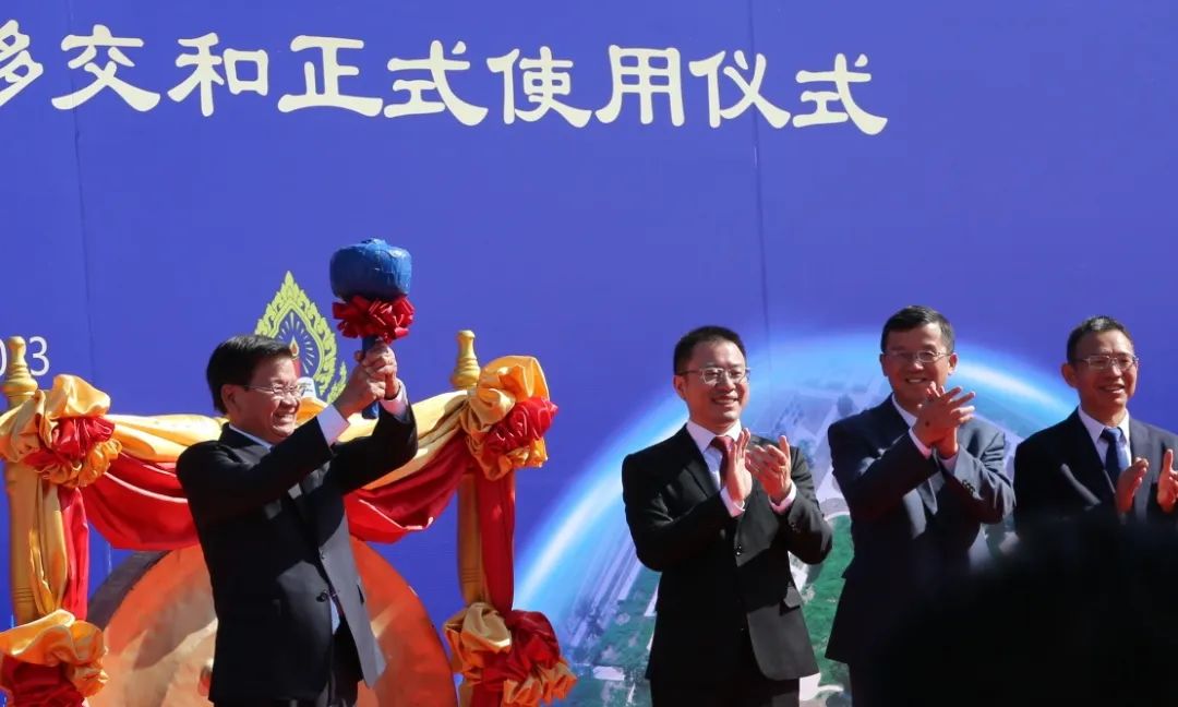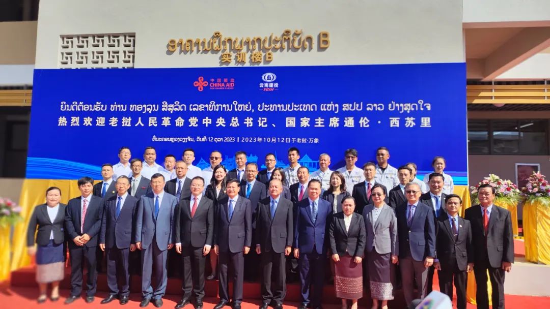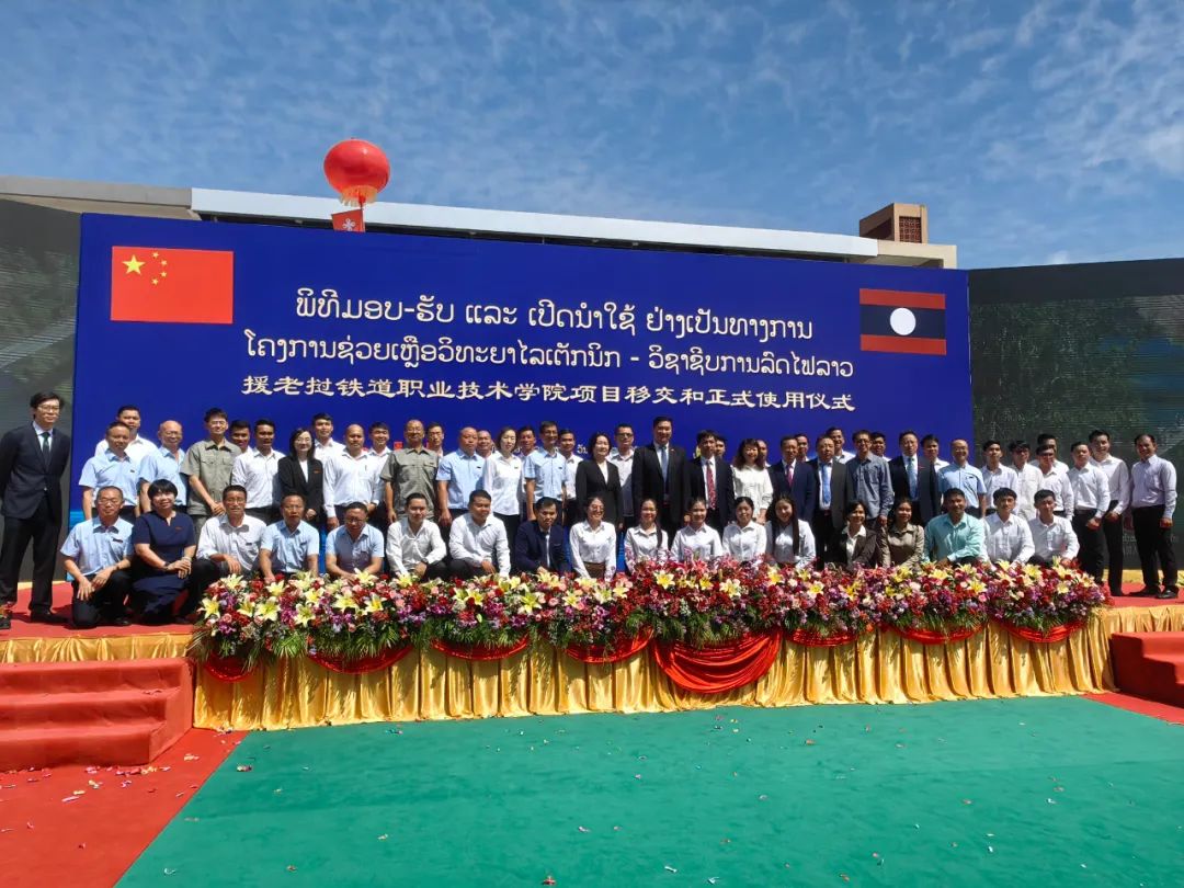 2023年10月12日上午老挝时间8点半,老挝铁道职业技术学院项目移交和正式使用仪式在老挝铁道职业技术学院隆重举行。老挝人民革命党中央总书记、国家主席通伦·西苏里出席仪式,为项目题词,并见证中国驻老挝使馆临时代办王畅先生向老挝教育与体育部部长普·西玛拉冯移交项目金钥匙。