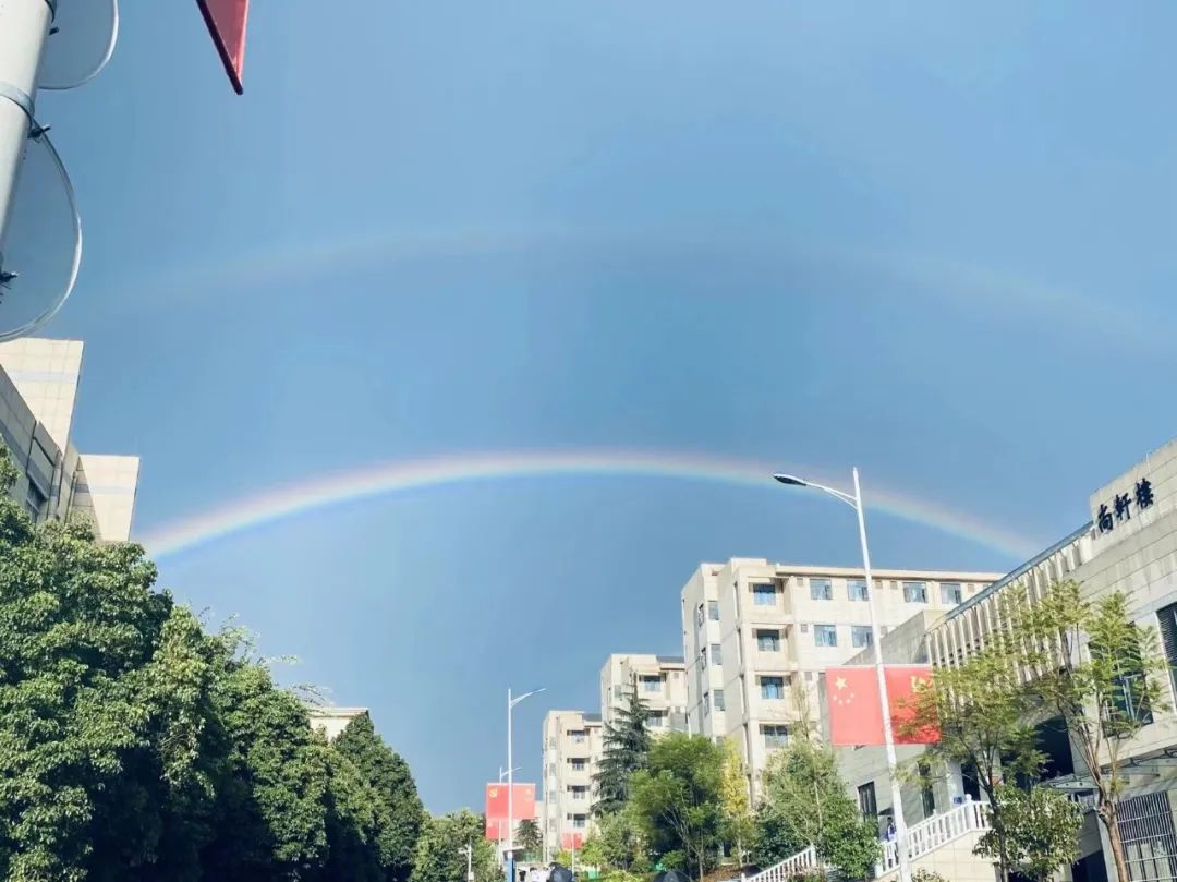 我在南院遇见的它,它们和云翳的昏暗相对照,在阴雨沉沉之后,阳光初绽之时,架起一道七色的桥梁,仿佛由天的另一端发出的邀请,它梦幻的光芒抹在天边,画出一道温柔的光晕。