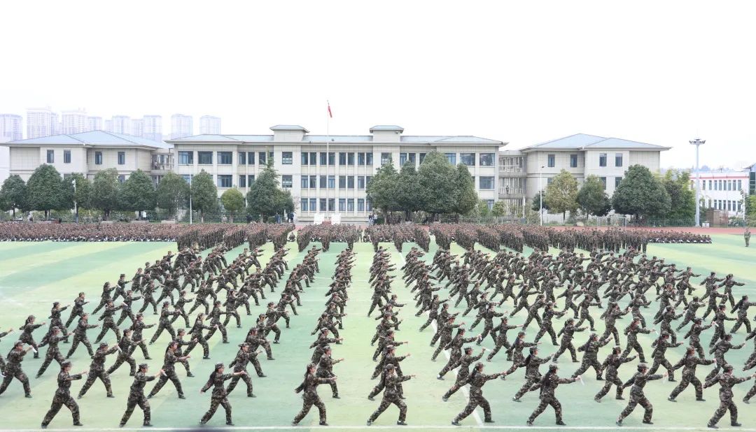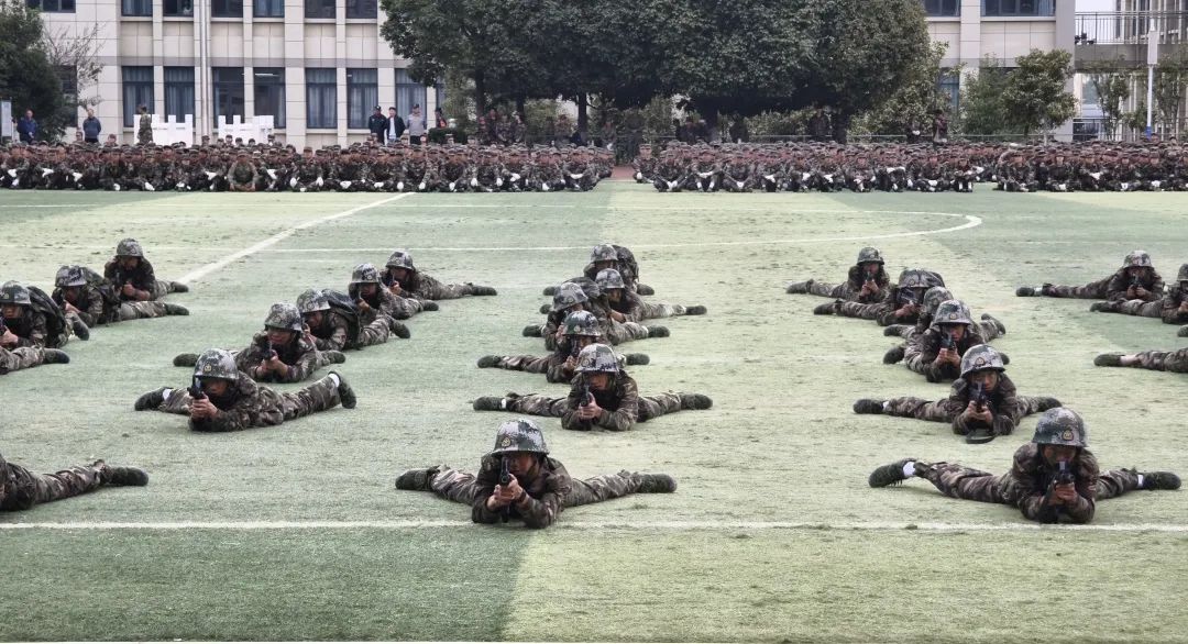 在响亮的口号声中,各方队依次走过主席台,展示着同学们21天军训的成果和收获。在特色训练科目展示环节,同学们展示了格斗术、匍匐刀、擒敌拳、战术表演等内容,操场就是他们的“战场”,队列整齐,气势磅礴。