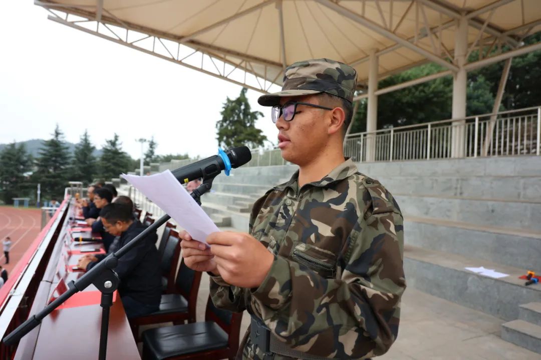 电气工程学院高梓航同学代表军训优秀学员发言,表示在未来的学习和生活中,也将带着军训中的坚持、团结和纪律意识,努力成为一名优秀的新时代好青年。