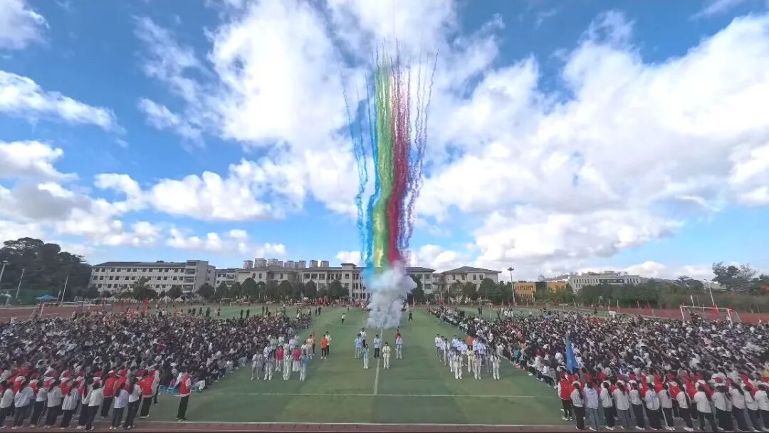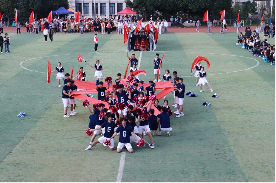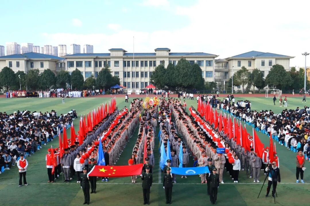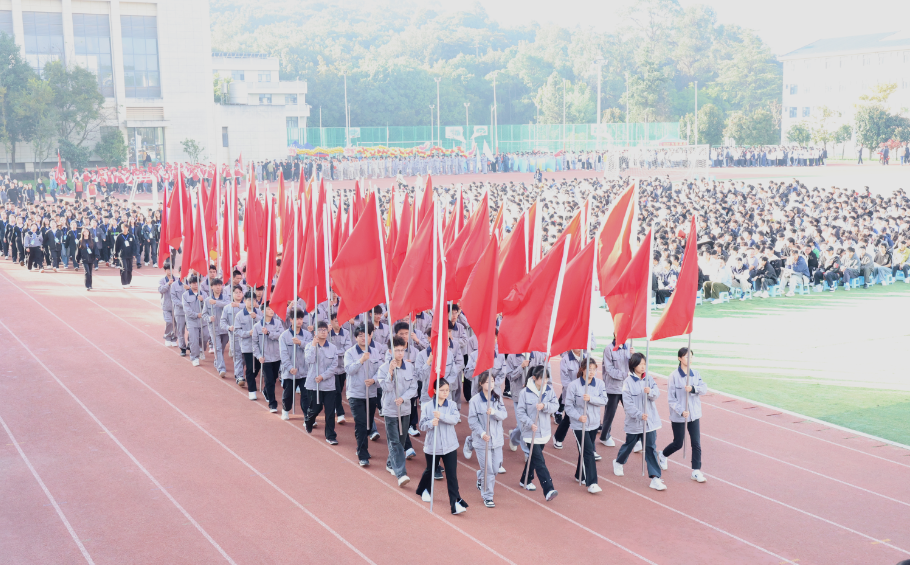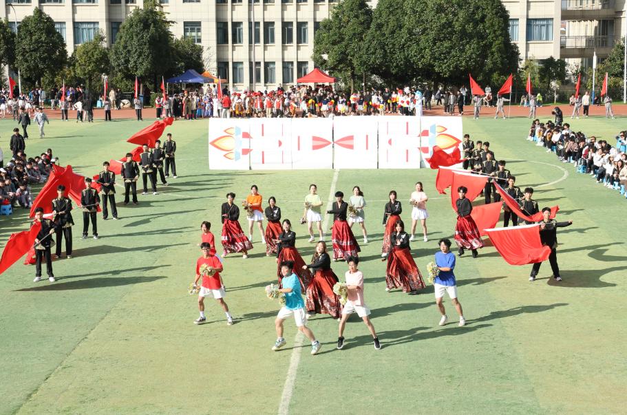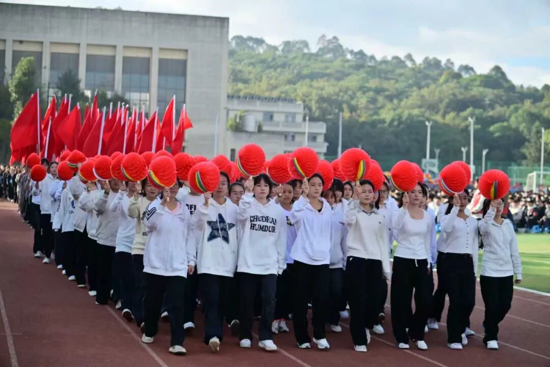 彩旗方阵手持烈烈红旗,炽热的颜色如火焰般燃烧跃动。奔跑的身影与翻飞的旗帜交织,汇成一片奔腾的红色海洋,以最纯粹的热情,瞬间点燃赛场的蓬勃朝气。
