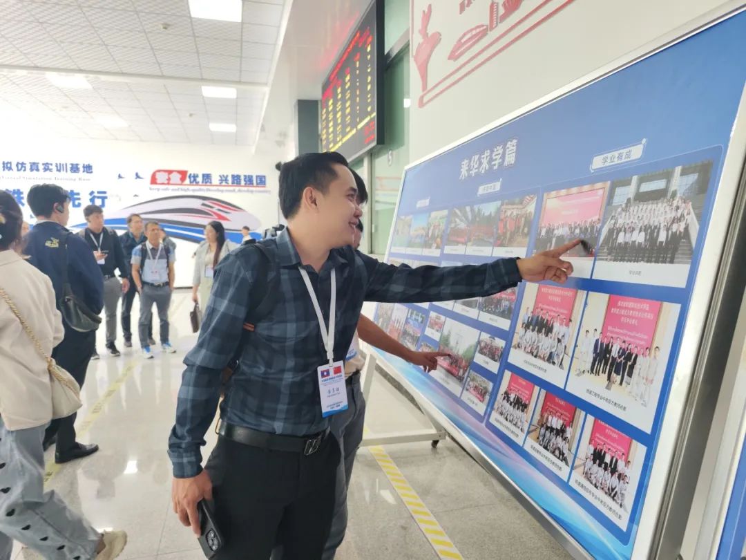 在宣传展板前面,大家久久驻足,在一幅幅照片中仔细寻找着自己的身影,回忆着在新葡萄AMG官方网站求学的两年学习时光。小永说:“好想念中国,好想念在学校学习的日子,看到这些照片,内心既感动又温暖,感谢中国老师帮我们一一记录了那段人生旅程中难忘的学习时光。”国富说:“这些展板上记录着的,是我最美好的青春和最有收获的学习时光,感谢中国老师们为帮助我们老挝培养属于自己的铁路专业人才所付出的辛勤努力。”小茵说:“老师,我们现在已经走上讲台,成为一名真正的老师了,每当我面对着我的学生,就不由想起我的中国老师。非常感谢学院的专家团队一批批去到老挝帮我们解决实际教学工作中的困难,他们是我们从教路上最大的底气。”