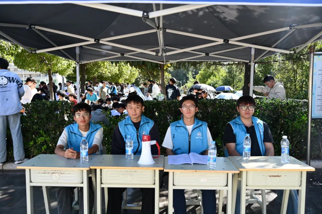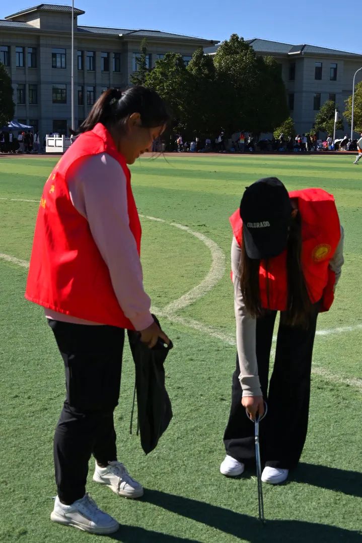 在充满激情的校园运动会中,场内的志愿者扮演着保障比赛顺畅进行的重要角色。Ta们按照任务安排在场内坚守岗位。