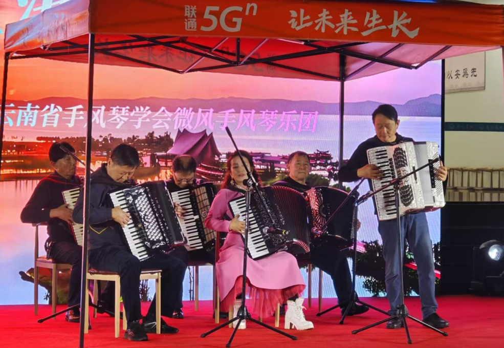 云南省手风琴学会微风手风琴乐团带来精彩的合奏表演,演绎了《滇池圆舞曲》《手风琴波尔卡》和《老友进行曲》等经典曲目,让观众领略到了手风琴合奏的无穷魅力。