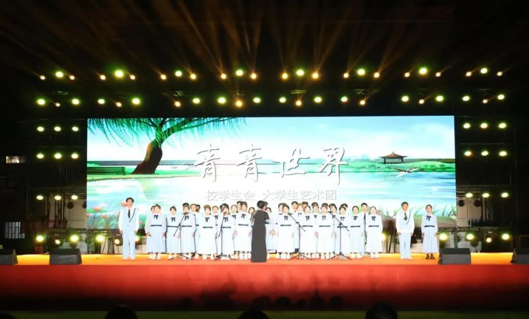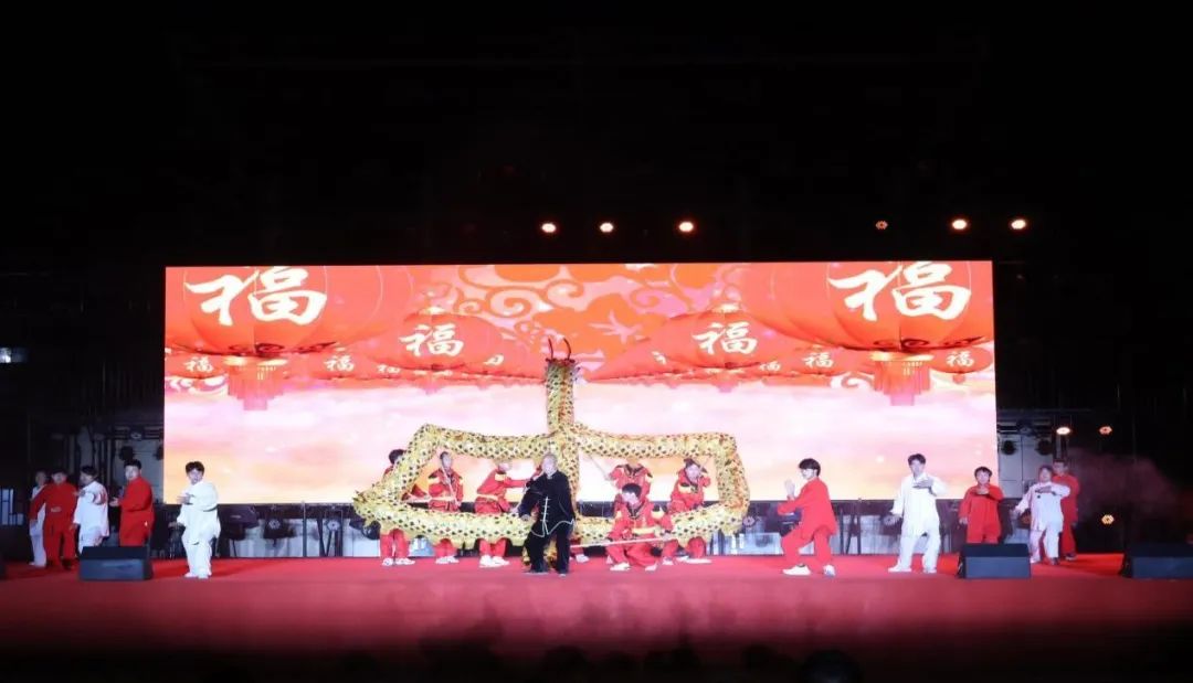 演出在大学生体育协会带来的《盛世欢歌》中拉开序幕,刚柔并济的太极拳,欢腾热闹的舞龙展示了伟大祖国国泰民安、繁荣兴盛的盛世景象。