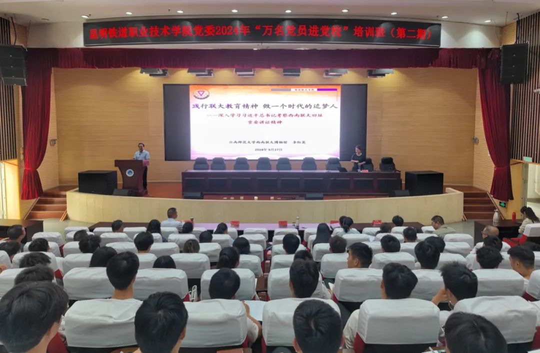 为进一步深入学习贯彻党的二十届三中全会精神,落实立德树人根本任务,引导党员教师牢记教书育人使命,自觉锤炼党性修养,结合年度“万名党员进党校”学习培训的统一安排部署。9月27日,学院开展2024年“万名党员进党校”第二期培训班。邀请云南师范大学的李红英馆长到校以《践行联大教育精神,做一个时代的追梦人》为题开展专题讲座。党委书记王树华主持讲座,全体党员、入党积极分子参加培训。