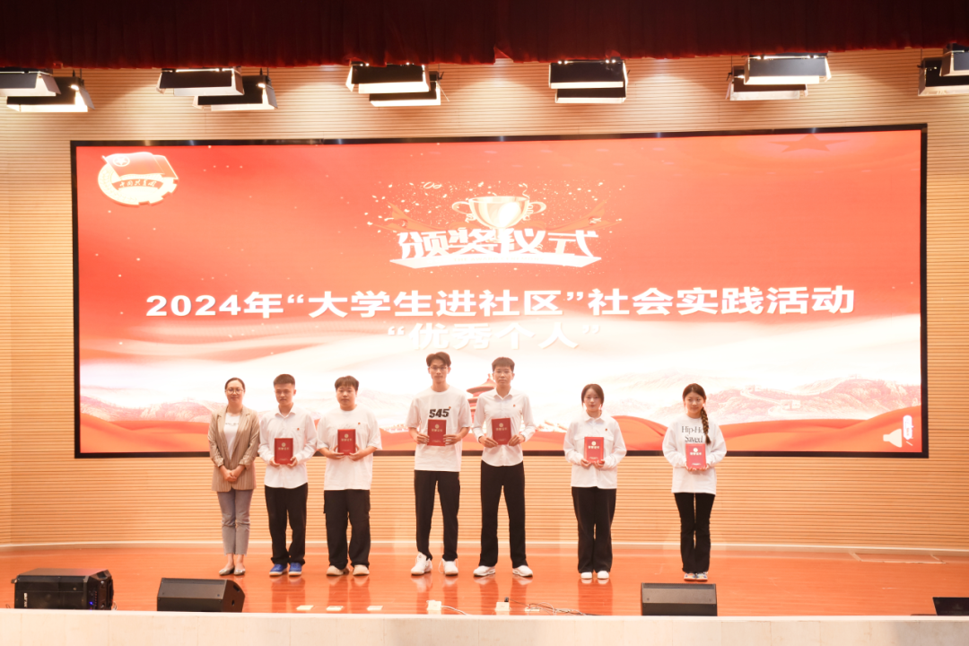 团委书记为2024年“大学生进社区”社会实践优秀个人颁发荣誉证书