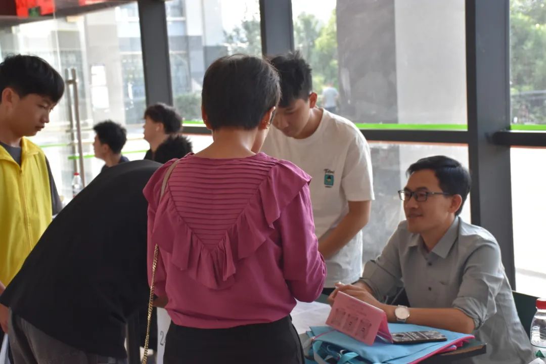 扫码、签到、注册……在班主任和学长学姐的帮助指引下,报到工作有条不紊,井然有序,他们认真核对新生信息,耐心地解释说明,帮助大家尽快融入新的集体,快速适应新的大学生活。