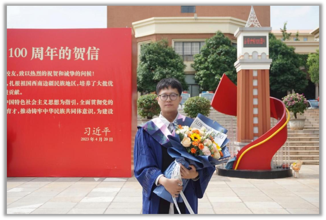颜钲曜, 2019年从新葡萄AMG官方网站毕业后继续求学,2024年云南大学硕士研究生毕业。从专科生到研究生,8年求学路,他深信,付出终会有回报,追光的人,终会光芒万丈。