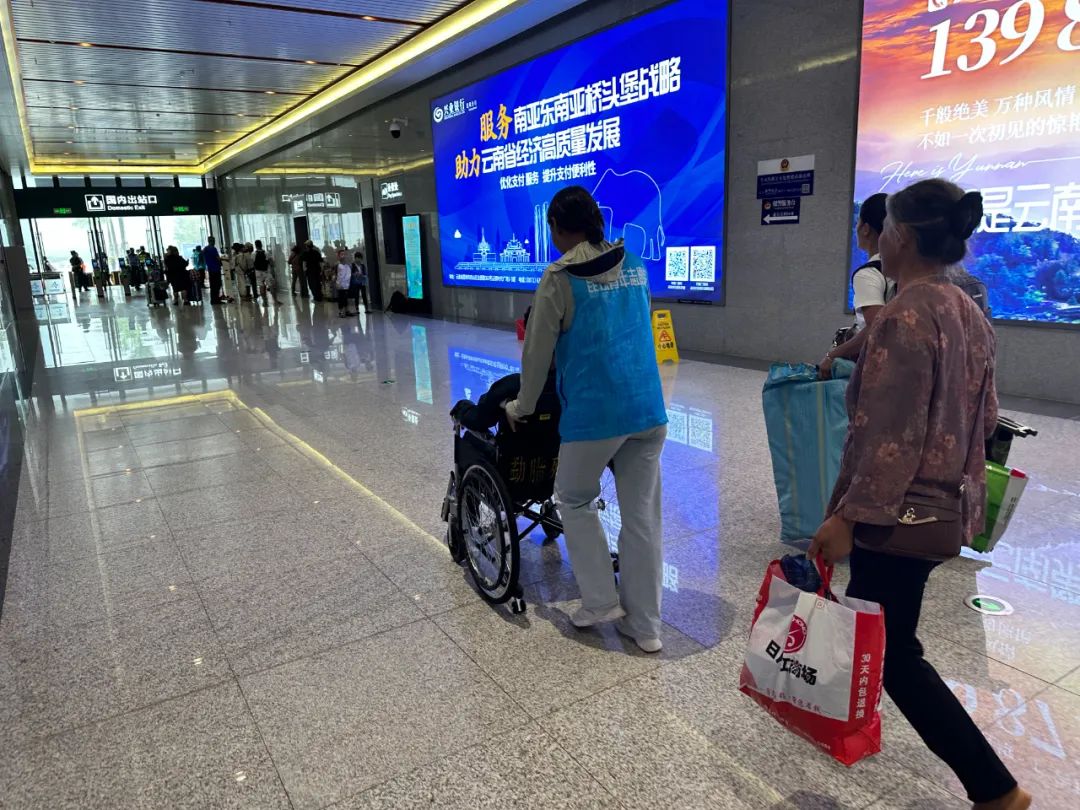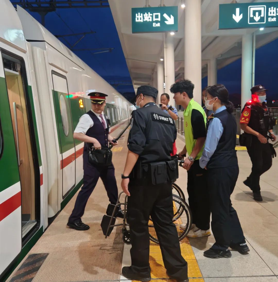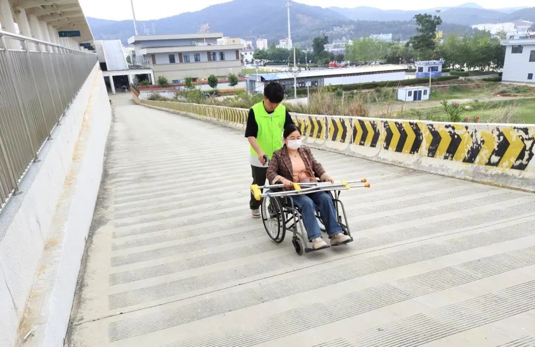 推着轮椅到站台接重点旅客