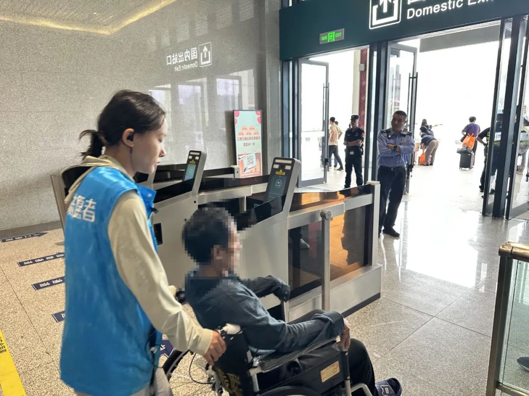 将旅客推送至出站口送到家属手上
