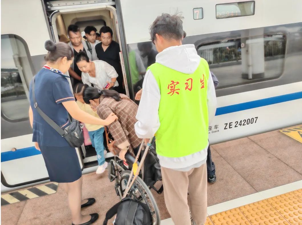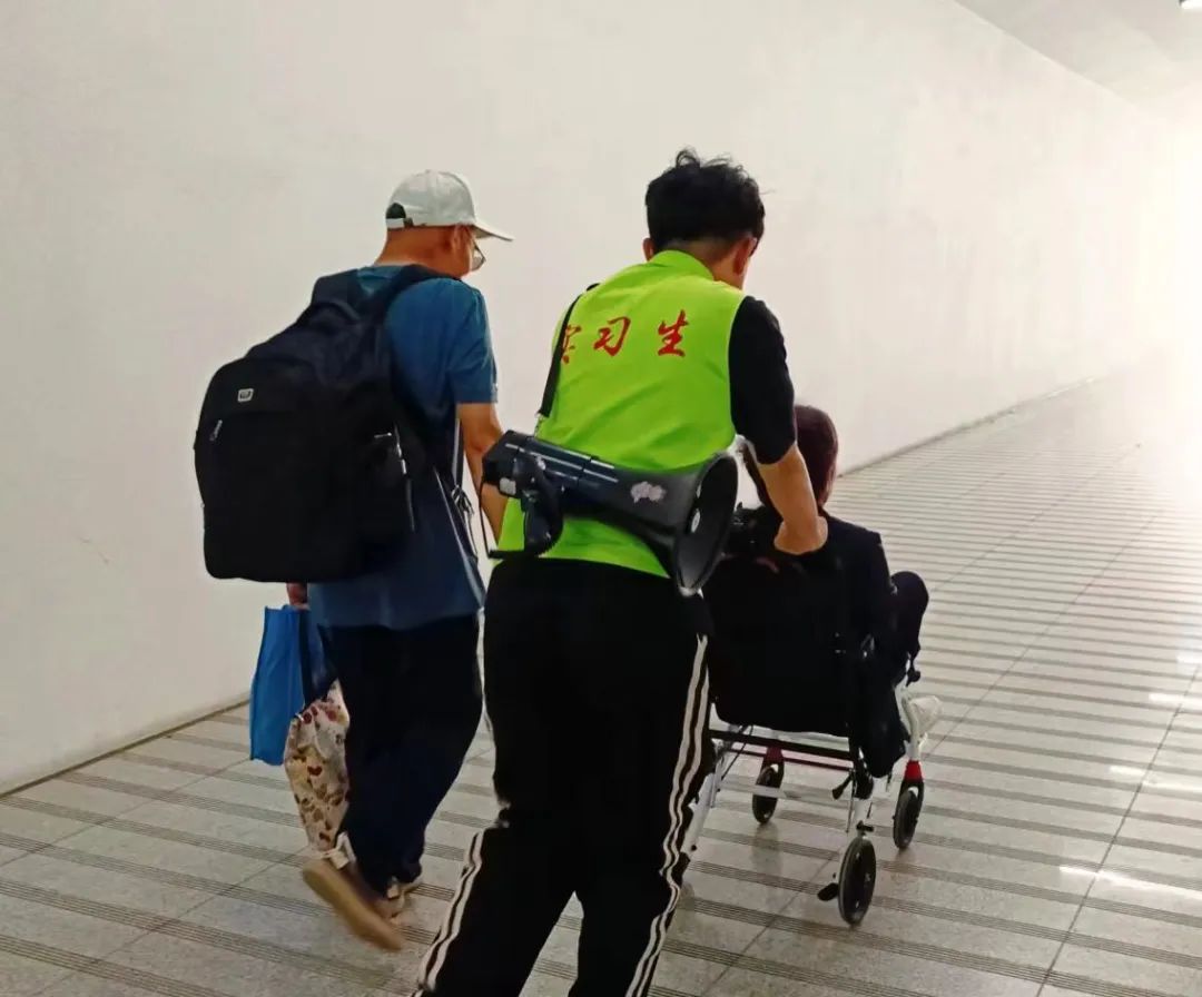 实习生柴永浩与车站值班员携带轮椅