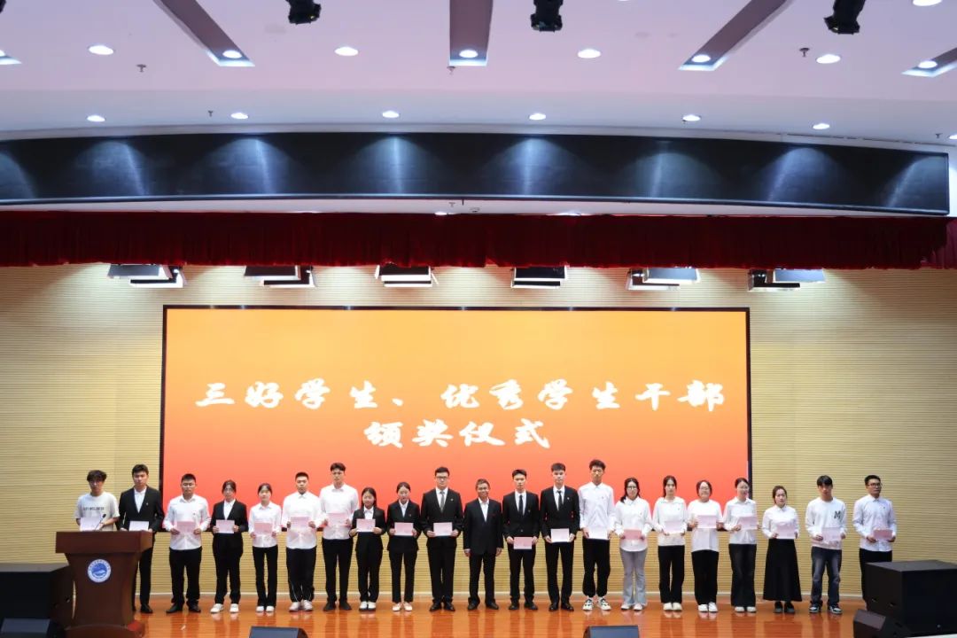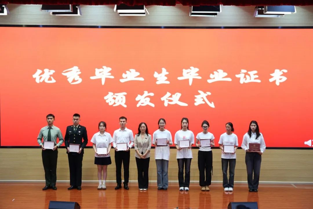 田效军宣读省级三好学生、优秀学生干部、先进班集体及2024届省级优秀毕业生名单,领导班子为获表彰的毕业生代表及优秀班集体颁发获奖证书及毕业证书。