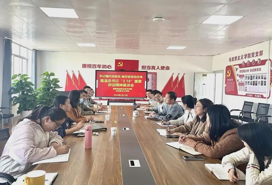3月13日下午,马克思主义学院召开研讨会,会议深入学习贯彻落实习近平总书记在学校思想政治理论教师座谈会上的重要讲话精神,学院党委副书记、院长李瑞林,党委委员、组织部部长邹建斌及马院部分教师参加座谈。