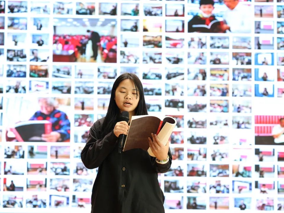 在交流互动环节,王伟先生邀请4名同学朗读《抗战阵亡将士名录》中同姓氏篇章的部分内容,以此告慰英烈、铭记历史,呼吁新时代青年要勇于担当,建功立业、请抗战忠魂检阅腾飞青春!