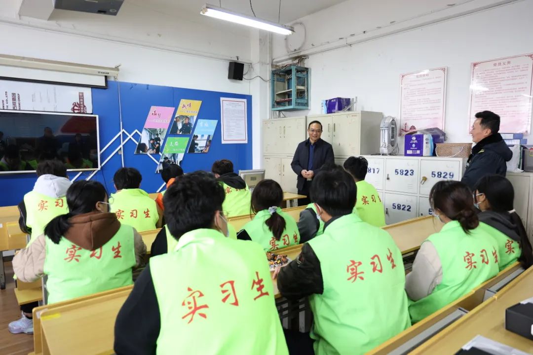 在实习同学的各岗点上,王树华与同学们亲切交流,像对待自家孩子一般叮嘱大家注意安全,休班时间多和父母联系,在外工作期间要照顾好自己,珍惜实习机会,多向师傅们学习请教,多向优秀的同学学习,用实际行动继续传承志愿精神,赓续奉献力量,为旅客提供更加优质、高效的服务,让旅客感受到家的温暖和关爱,也为今后正式走上工作岗位打下扎实基础。并表示,今年的年夜饭,和大家一起吃,这个年,老师陪你们过!请同学们转告家长,不管是休班的同学,还是在岗位上、在跑车途中的同学,学院和站段都为大家准备了年夜饭及新春祝福,让家长们放心!