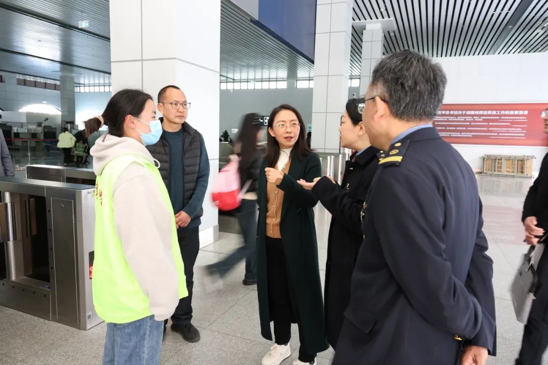 在昆明站副站长郑斌和客运车间副主任李芳的陪同下,李瑞林到各岗位点与实习同学们亲切交流,了解同学实习期间的岗位工作内容,鼓励同学们大胆自信地工作,多向师傅们学习,充分利用好实习机会,将平时学习到的理论知识与现场实践进行有机结合,真正学以致用。