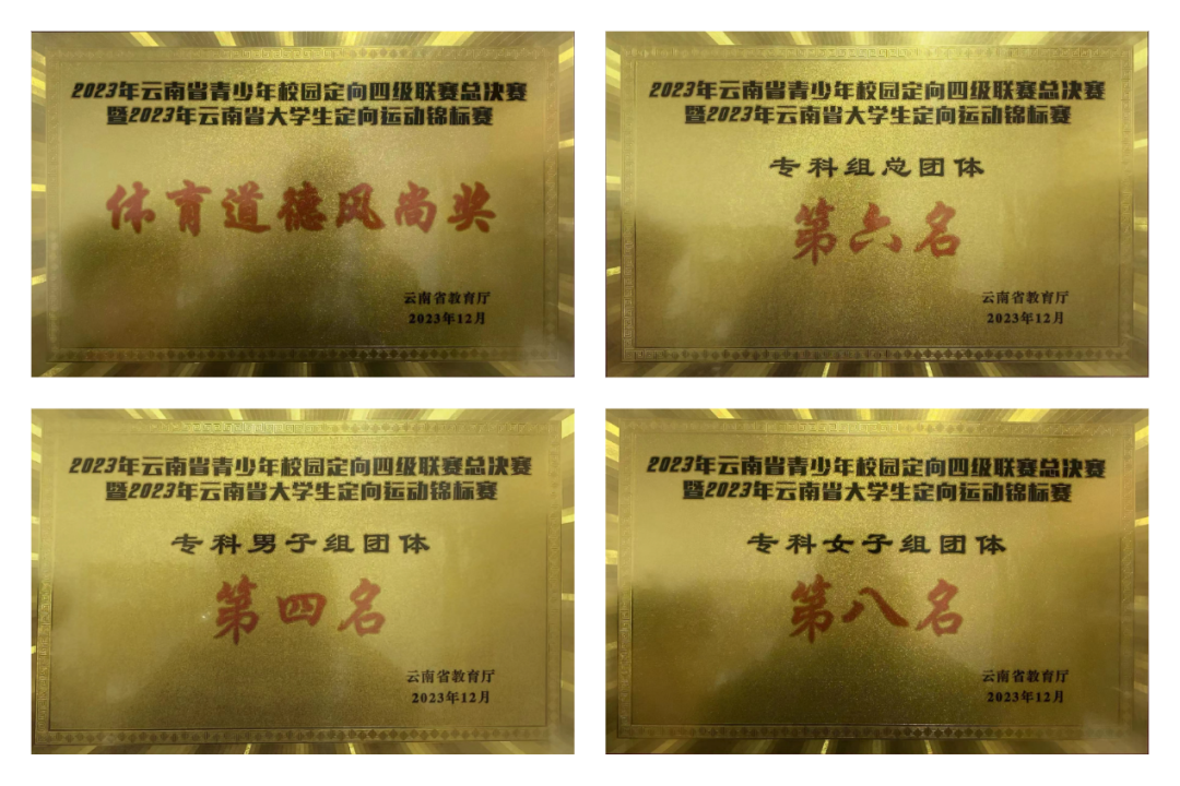 2023年12月,大学生体育协会定向运动俱乐部参加云南省青少年校园定向四级联赛总决赛暨2023年云南省大学生定向运动锦标赛,荣获高职高专组团队定向、积分赛男子组第三名,男子组团体第四名,总团体第六名,女子组第八名的好成绩。