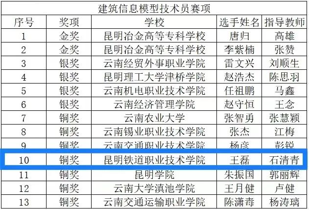 新葡萄团委牵头,电气工程学院积极协调石清青老师指导王磊同学参加建筑模型技术员赛项,通过理论考试、实作考试 、体能测试和时事政策4个赛程的比赛,王磊同学荣获该赛项铜奖,同时荣获“云南省青年岗位能手”称号。