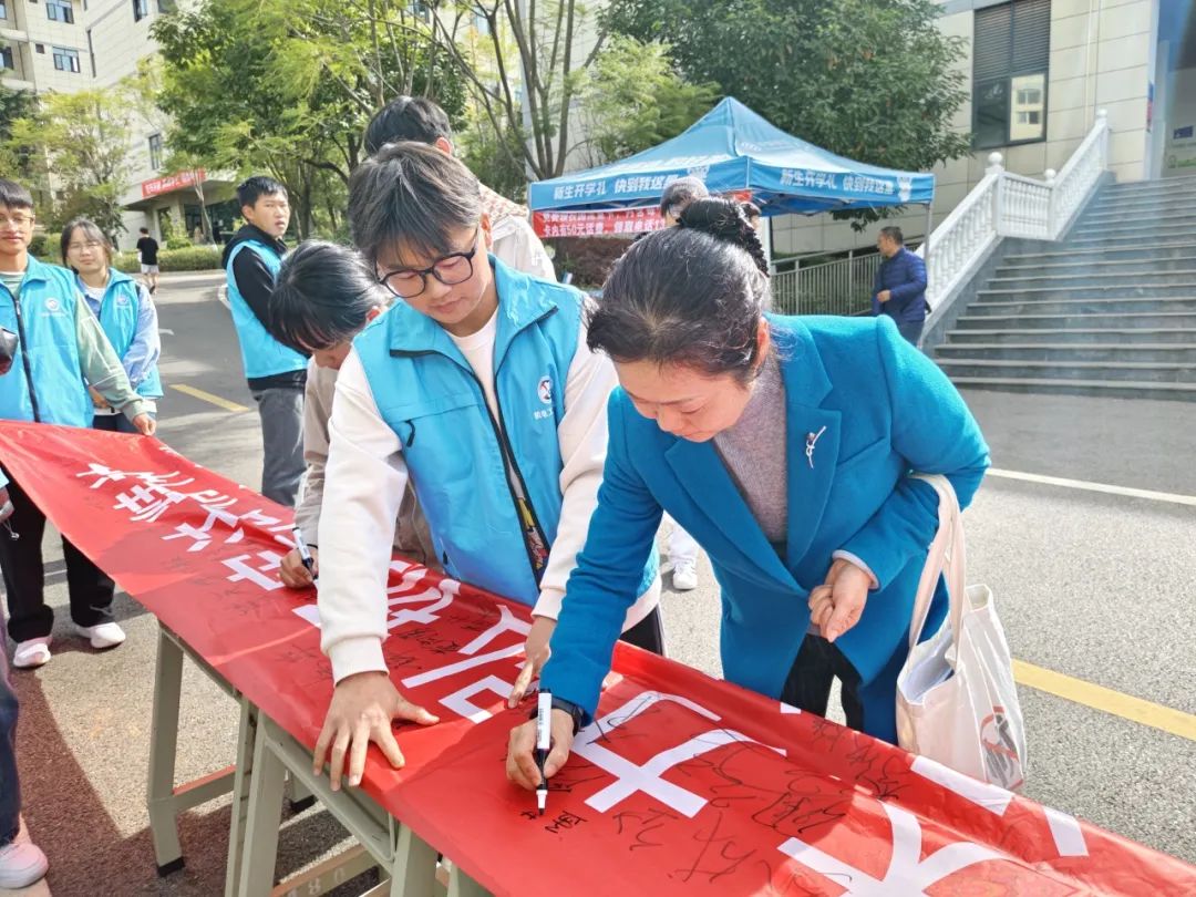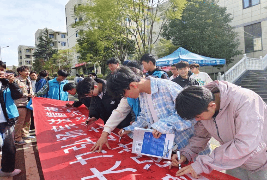 围绕“大力弘扬宪法精神,建设社会主义法治文化”的主题开展现场法治宣传活动,邀请律师到校开展《大力弘扬宪法精神 建设社会主义法治文化》专题讲座;利用校园电子屏等宣传阵地播放宣传标语,校园内悬挂宣传横幅;组织“学习宪法,从我做起”现场签名活动。通过系列活动,在校园内营造了浓厚的法治氛围,激发了同学们学习宪法的积极性和主动性,进一步增强了法治意识,为平安校园和法治校园筑牢根基。