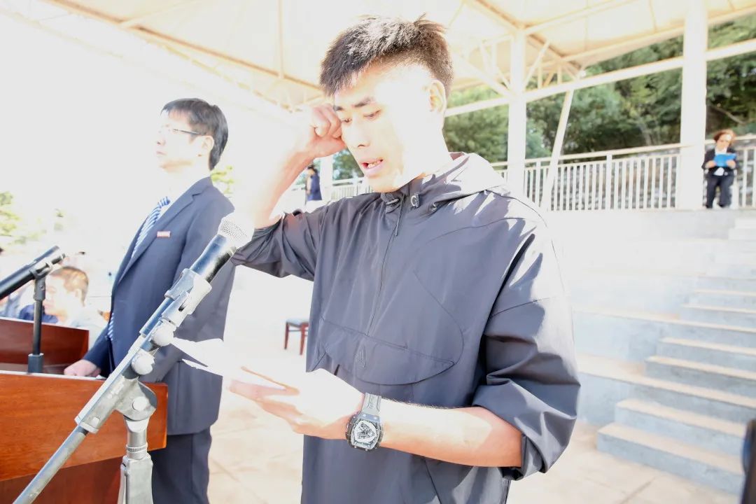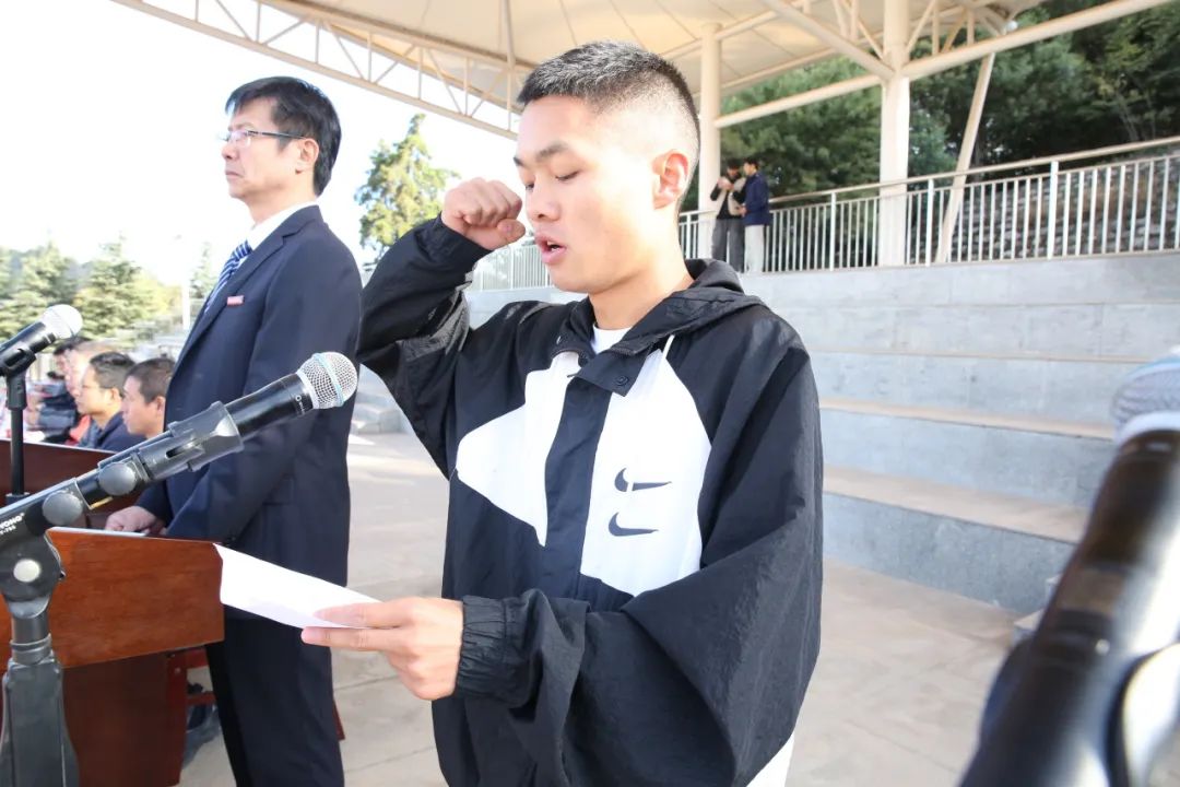 基础教学部教师陈国松、邮电学院学生高则普分别代表裁判员、运动员宣誓。