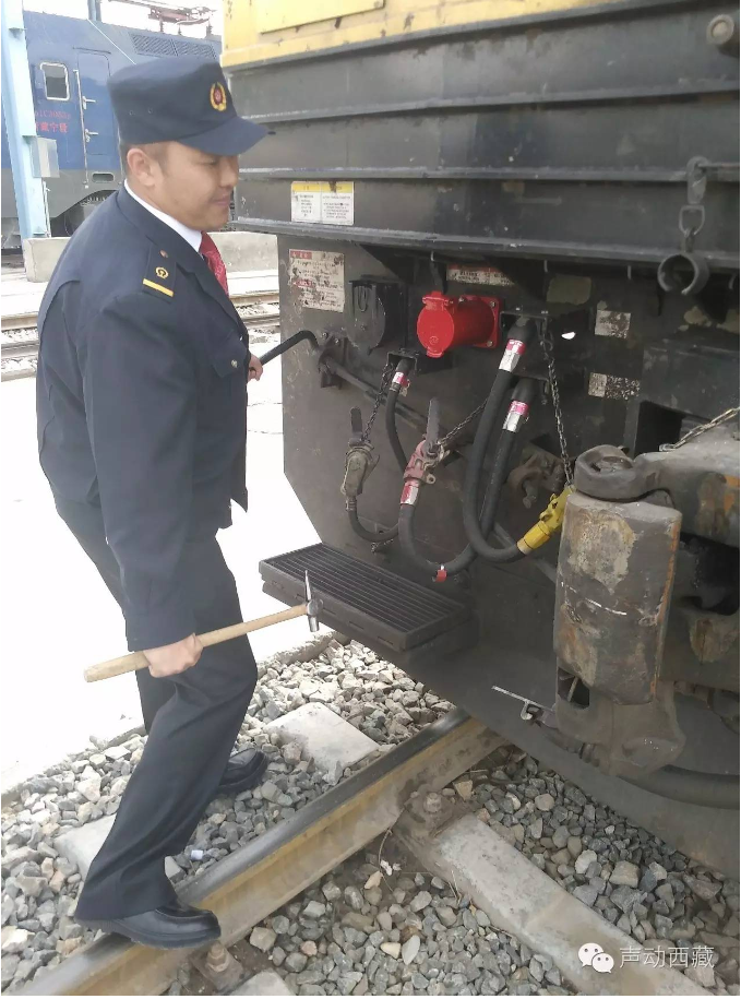 皑皑白雪覆盖下的念青唐古拉雪峰在蓝天白云的衬托下显得格外美丽,机车内,司机扎西彭措却无暇欣赏远处的美景。此时,他正手握机车操纵手柄,紧盯机车仪表和线路前方,精神抖擞、干净利落地执行着手比眼看、呼唤应答值乘作业标准。声声汽笛见证了赤子之心。扎西彭措目前在格尔木机务段拉萨机辆整备中心安全室工作。